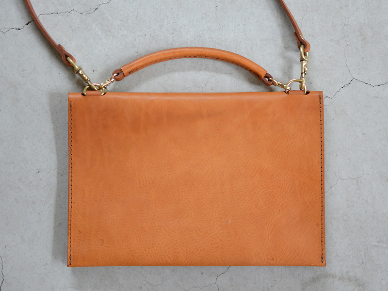 マチをとっていないフラットなデザインですが、実はフタが2枚あります。しかも、3部屋構造になっています。沢山の荷物は入れられませんが、収納物に応じて革が膨らんでくれますので、意外とモノが入ります。