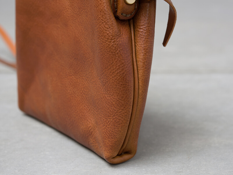 ユーフラテを使用したポシェット。ストラップの通し方を変えると、腕かけや手持ちでも使える長さになり、その日の服装や気分に合わせて様々な使い方が可能です。休日のお出かけをはじめ、旅行時に貴重品を持ち歩くサブバッグとしてなど、様々なシーンでお使いいただけます。