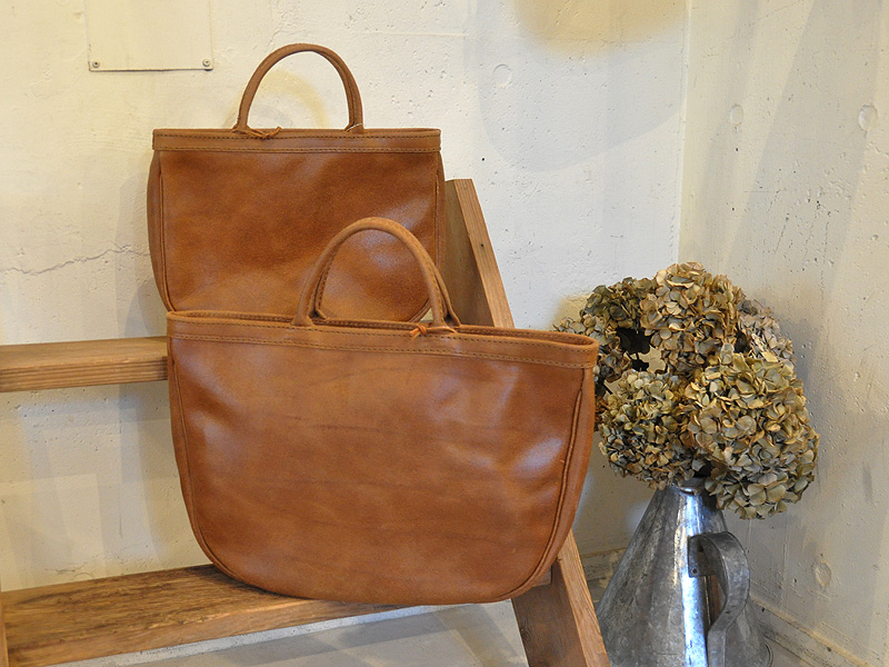 リバースレザー初のトートになりました。しかも、床面(革の、裏面)を表として使ったタイプ。