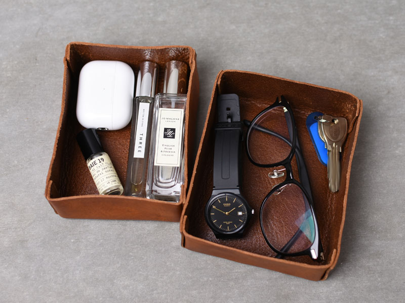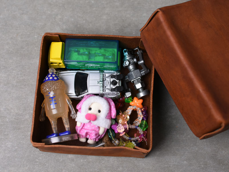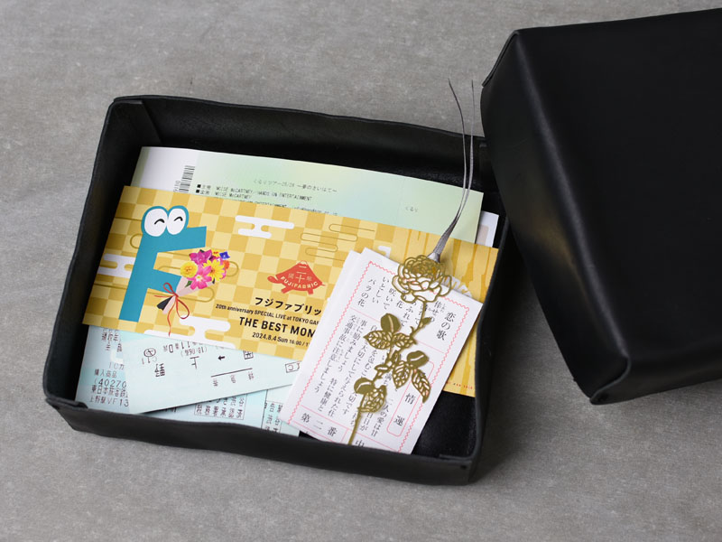 左:長方形8。ライブのチケットや切符、紙モノの思い出。右:長方形9。革メンテナンスセット。箱も一緒にお手入れしましょう。