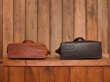 この鞄の特徴である底部分の作りもM、Lサイズ共に異なっています。