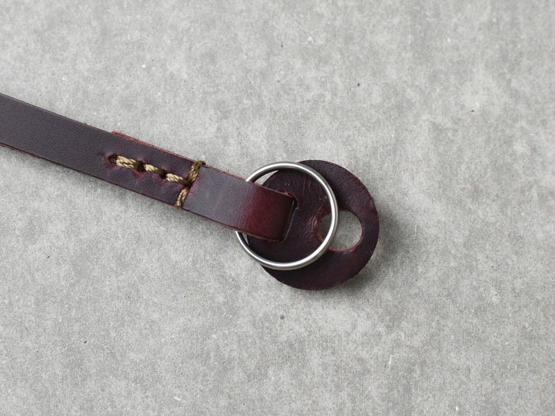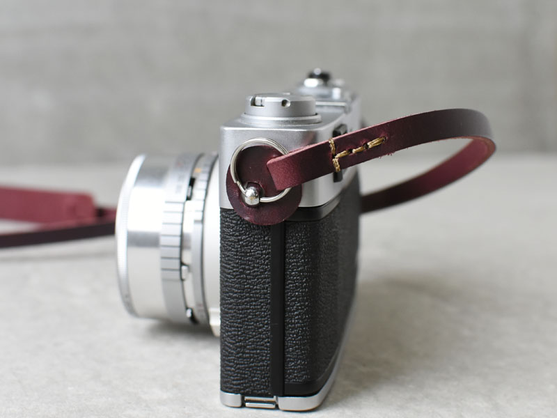 リングをカメラの突起に通して取り付けます。保護用の革パーツでカメラ本体をリングのスレから保護します。