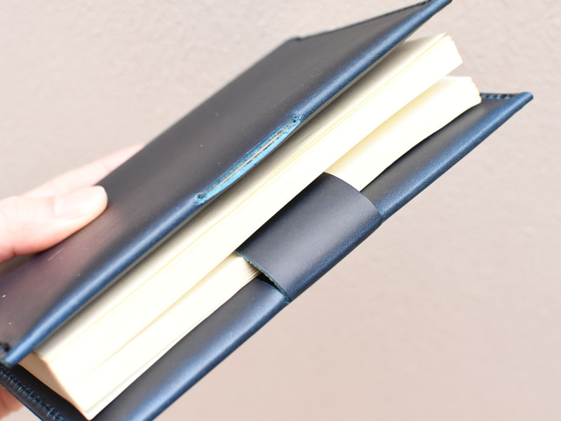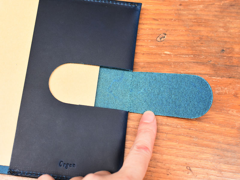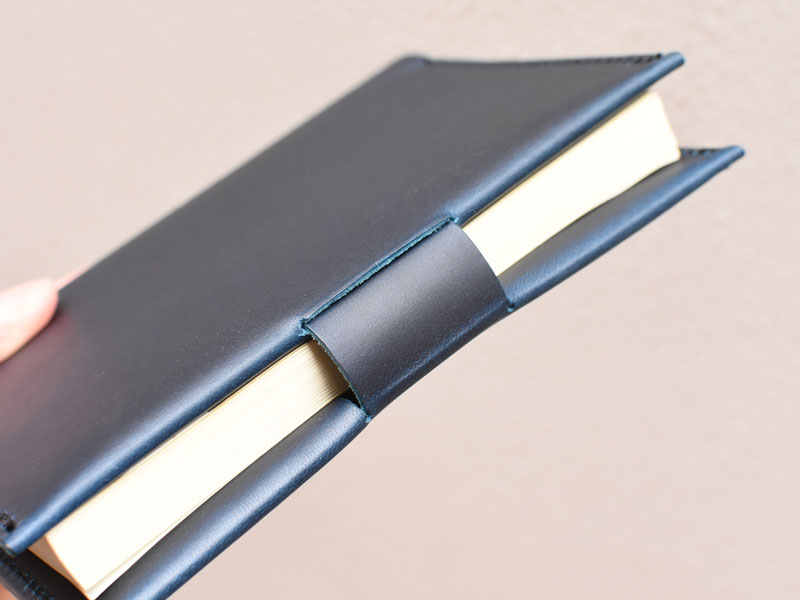 こちらの切れ込みは、しおり代わりに挟んだり、反対側に差し込んで本の開き防止としてお使いいただけます。鞄の中でも安心です。