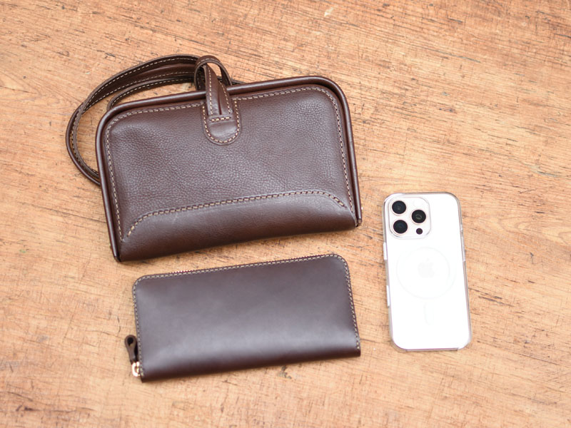 Ⅿサイズ収納例:フルジップ長財布GS-76、iPhone16 Pro