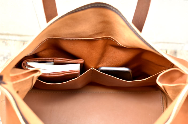 中のポケットは二つに分かれていて、文庫本(GS-53)やスマートフォンを。