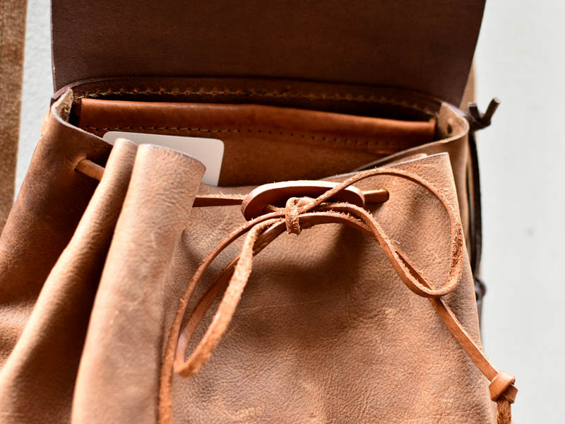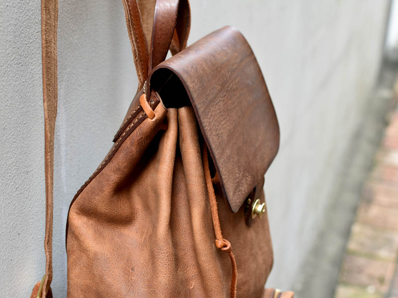 ツヤのないツイストに対比して、ツヤのあるミッスーリとの組み合わせで迫力のあるリュックを作りました。