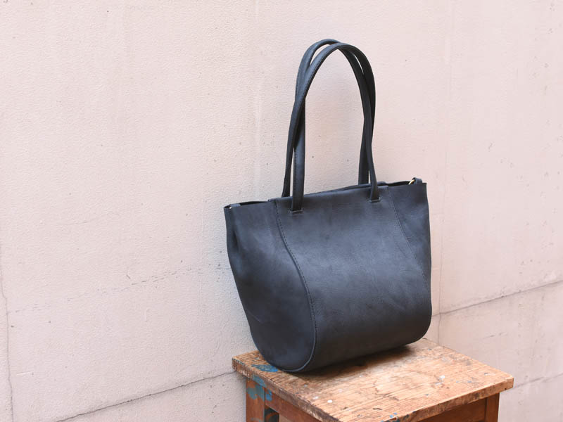 マチの金具を外すと広がり、また違ったシルエットになります。