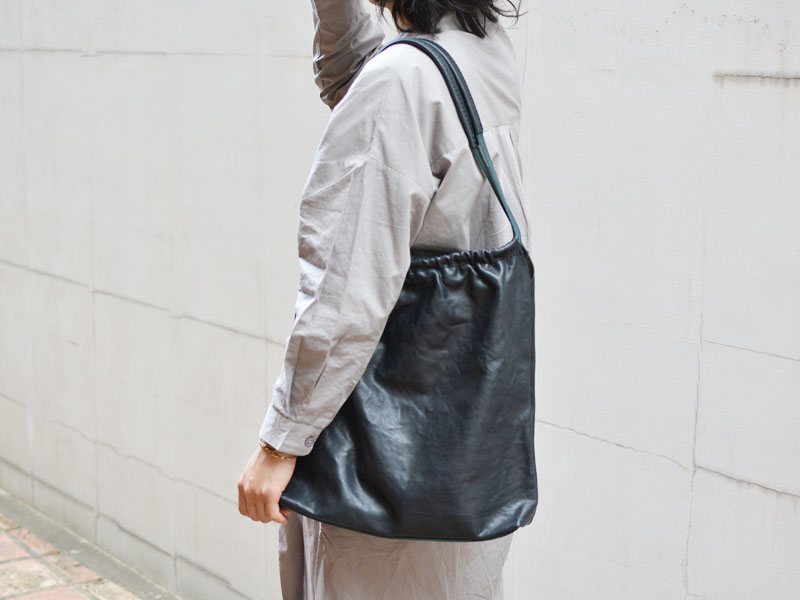 袋状の本体は、ザクザク入ってサクサク出し入れできる、ざっくりとしたオープンタイプです。